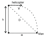 18. A helicopter is flying horizontally with a speed ‘ $v$ ‘ at an altitude ‘ $h$ ‘ has to drop a food packet for a man on the ground. What is the distance of helicopter from the man when the food packet is dropped?