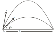 Solution: At complementary angles, ranges are equal. $$ \begin{aligned} & \therefore h_1=\frac{u^2 \sin ^2 \theta}{2 g}, h_2=\frac{u^2 \cos ^2 \theta}{2 g} \\ & \therefore h_1 \times h_2=\left(\frac{2 u^2 \sin \theta \cos \theta}{g}\right)^2 \times\left(\frac{1}{16}\right) \\ & \Rightarrow 16 h_1 h_2=R^2 \end{aligned} $$