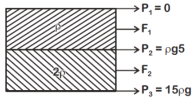 101. Two liquids of densities $\rho_1$ and $\rho_2\left(\rho_2=2 \rho_1\right)$ are filled up behind a square wall of side $10 \mathrm{~m}$ as shown in figure. Each liquid has a height of $5 \mathrm{~m}$. The ratio of the forces due to these liquids exerted on upper part $\mathrm{MN}$ to that at the lower part NO is (Assume that the liquids are not mixing)(1) $1 / 4$